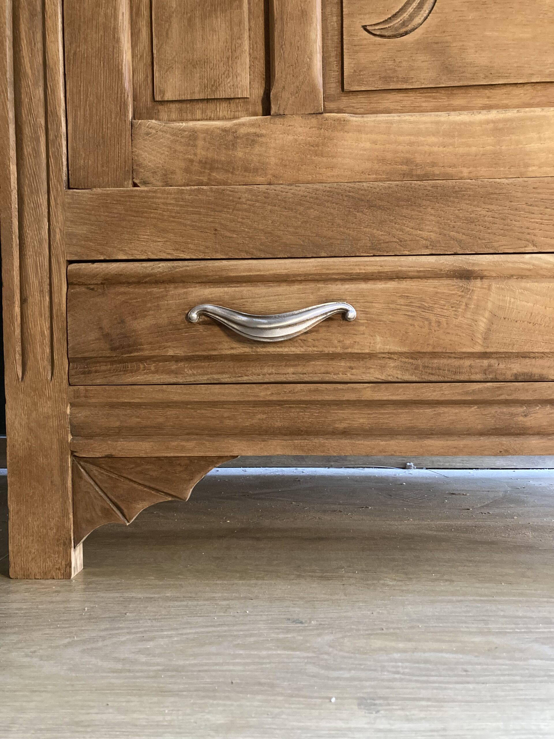 En partie basse un grand tiroir munis de ses poignées d’origine.
