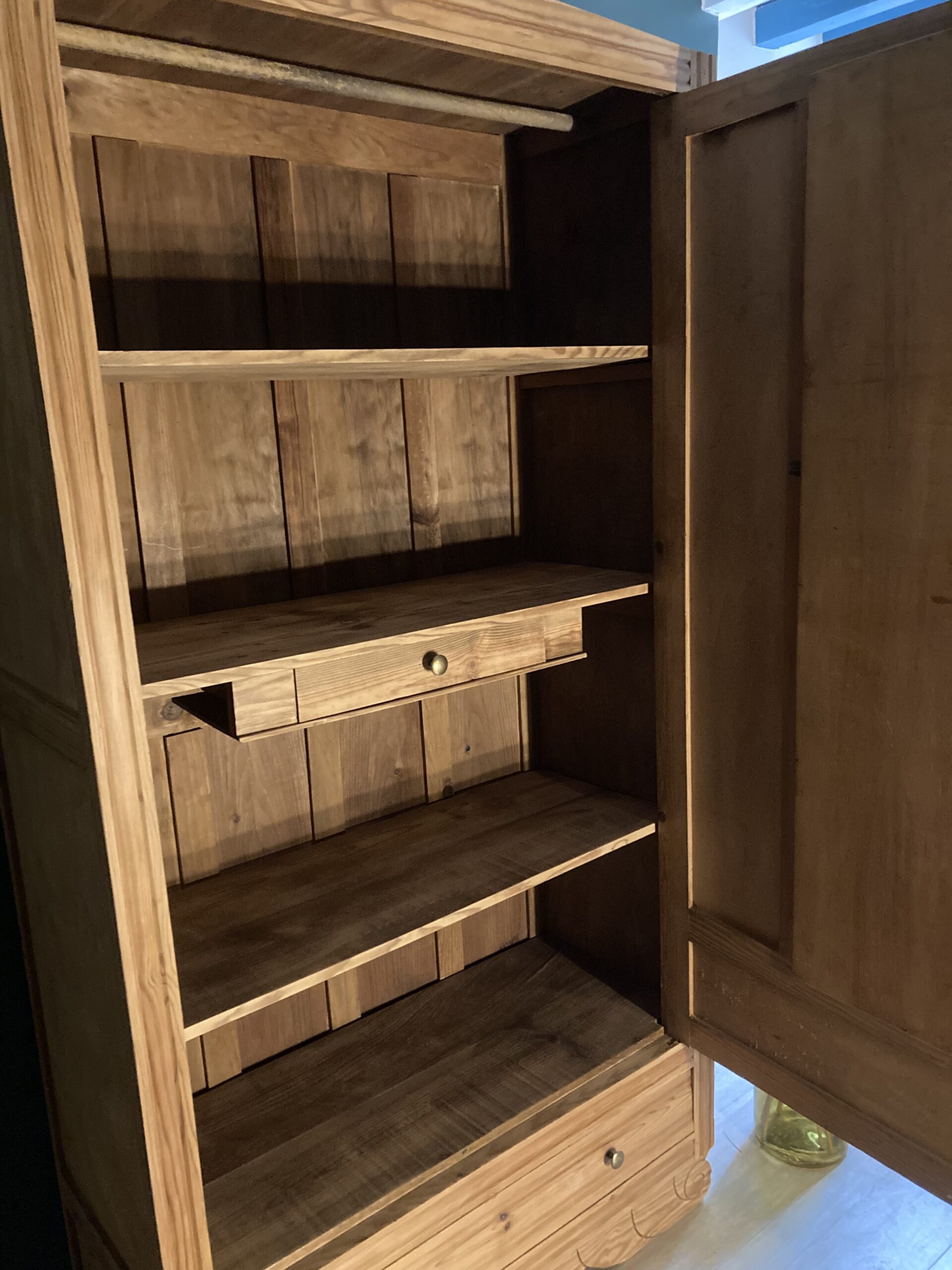 A noter la présence de l’ancienne barre de penderie, si vous souhaitez basculer en penderie en retirant les 3 étagères.