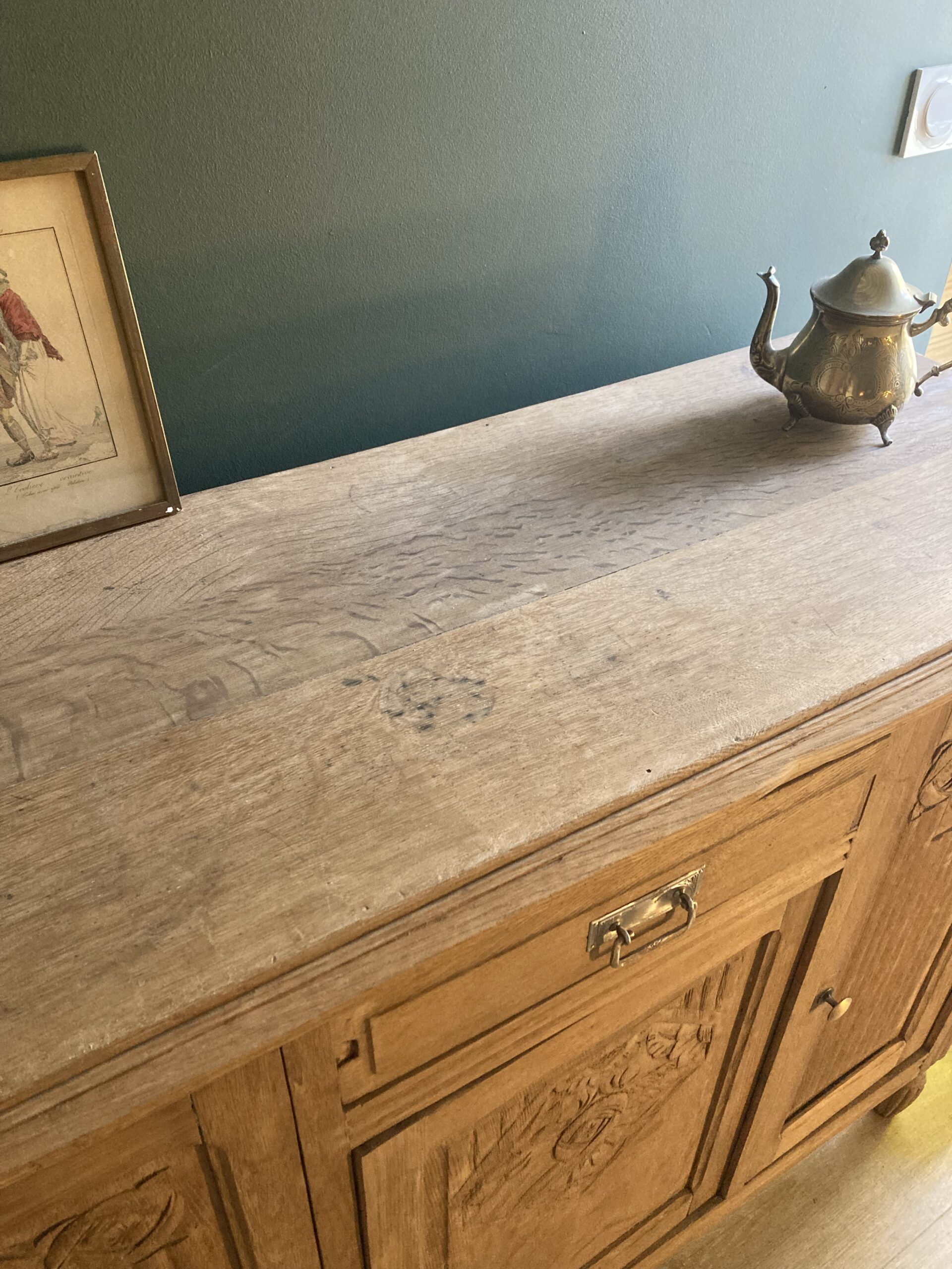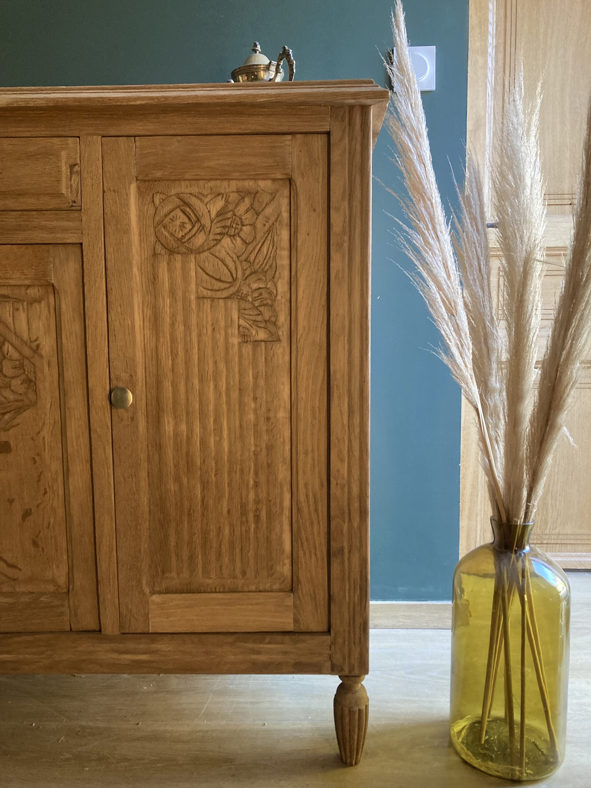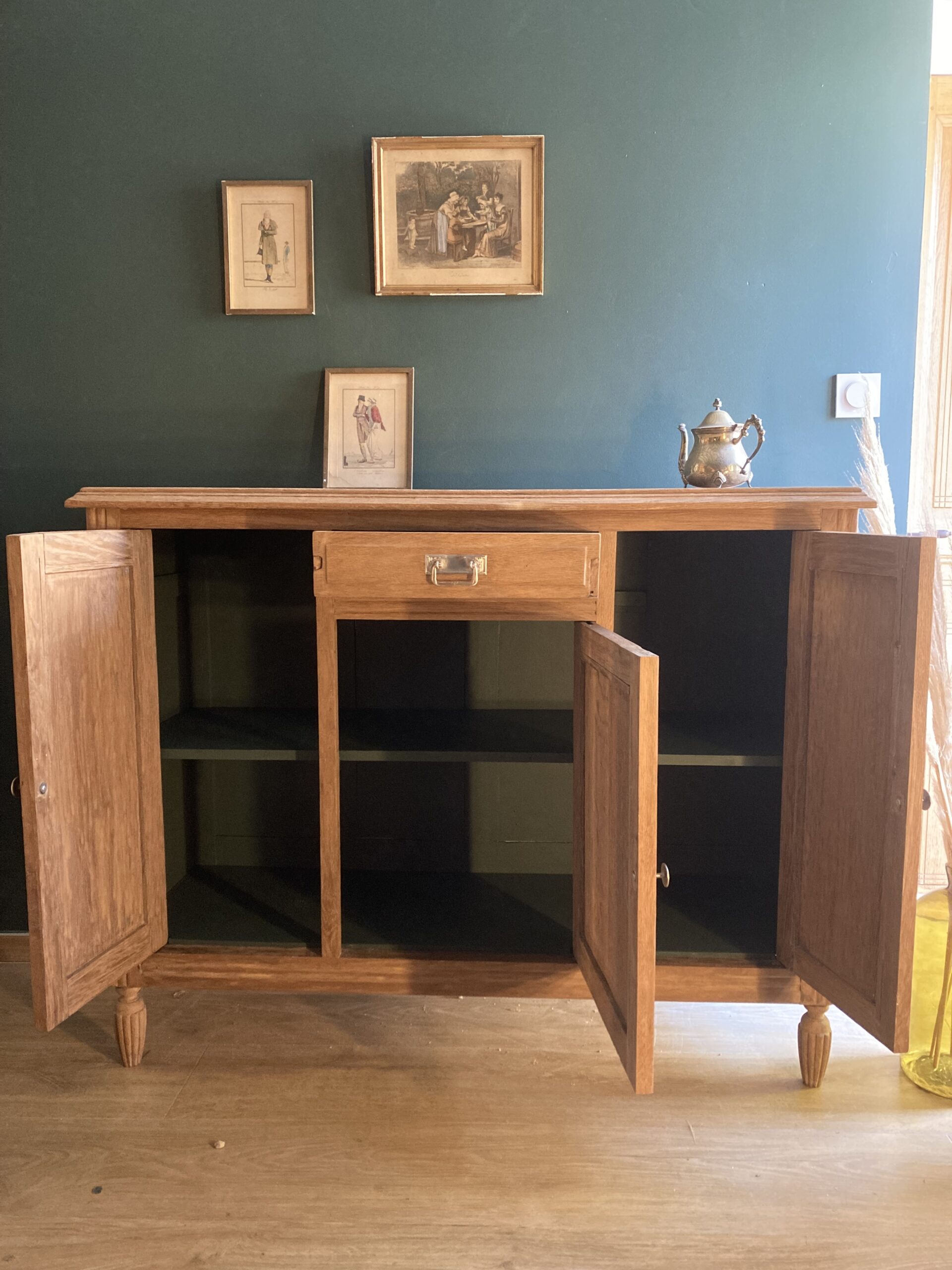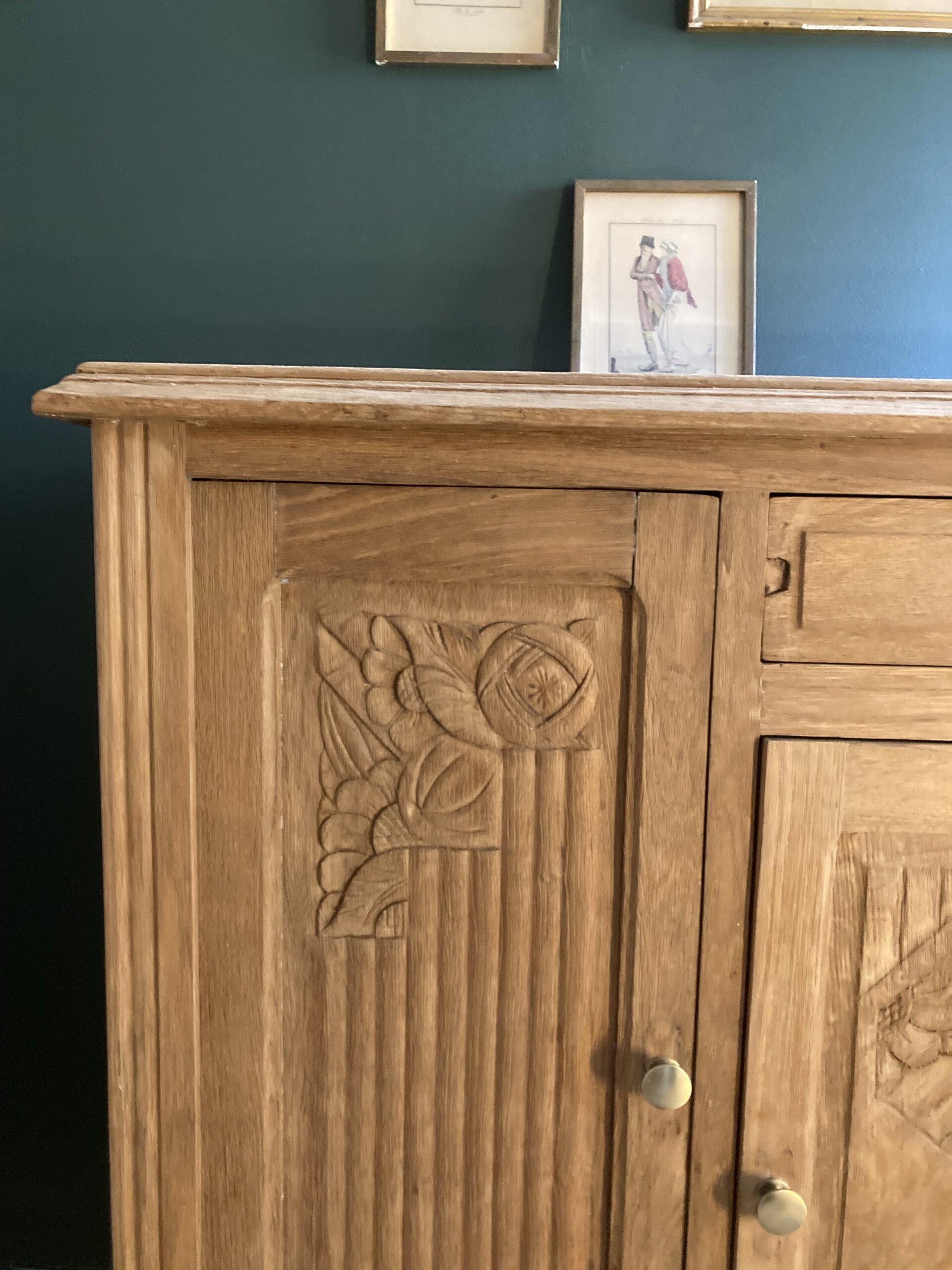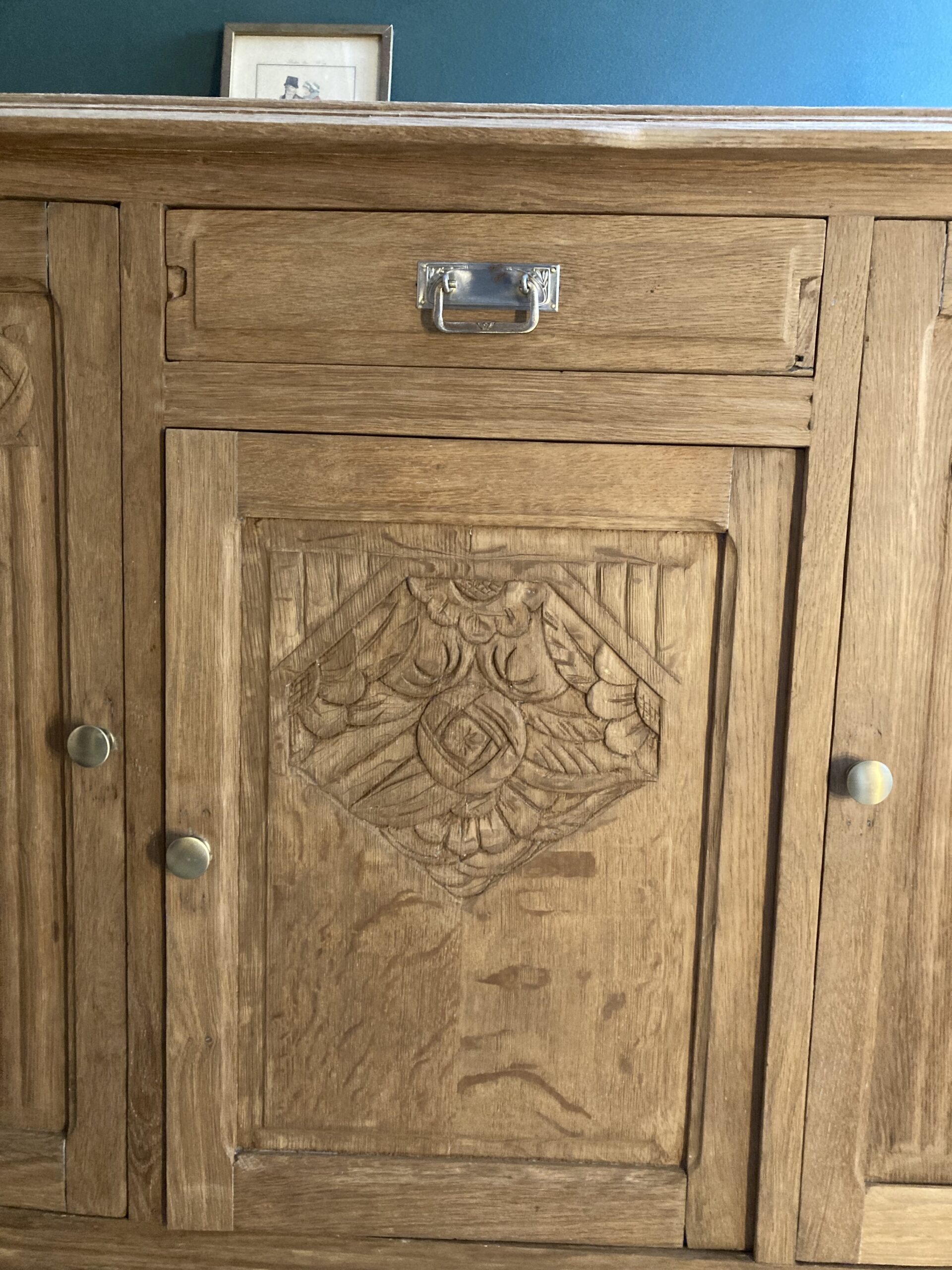 Ce magnifique buffet en chêne, aux lignes caractéristiques de la période Art Déco, a été entièrement nettoyé, poncé.