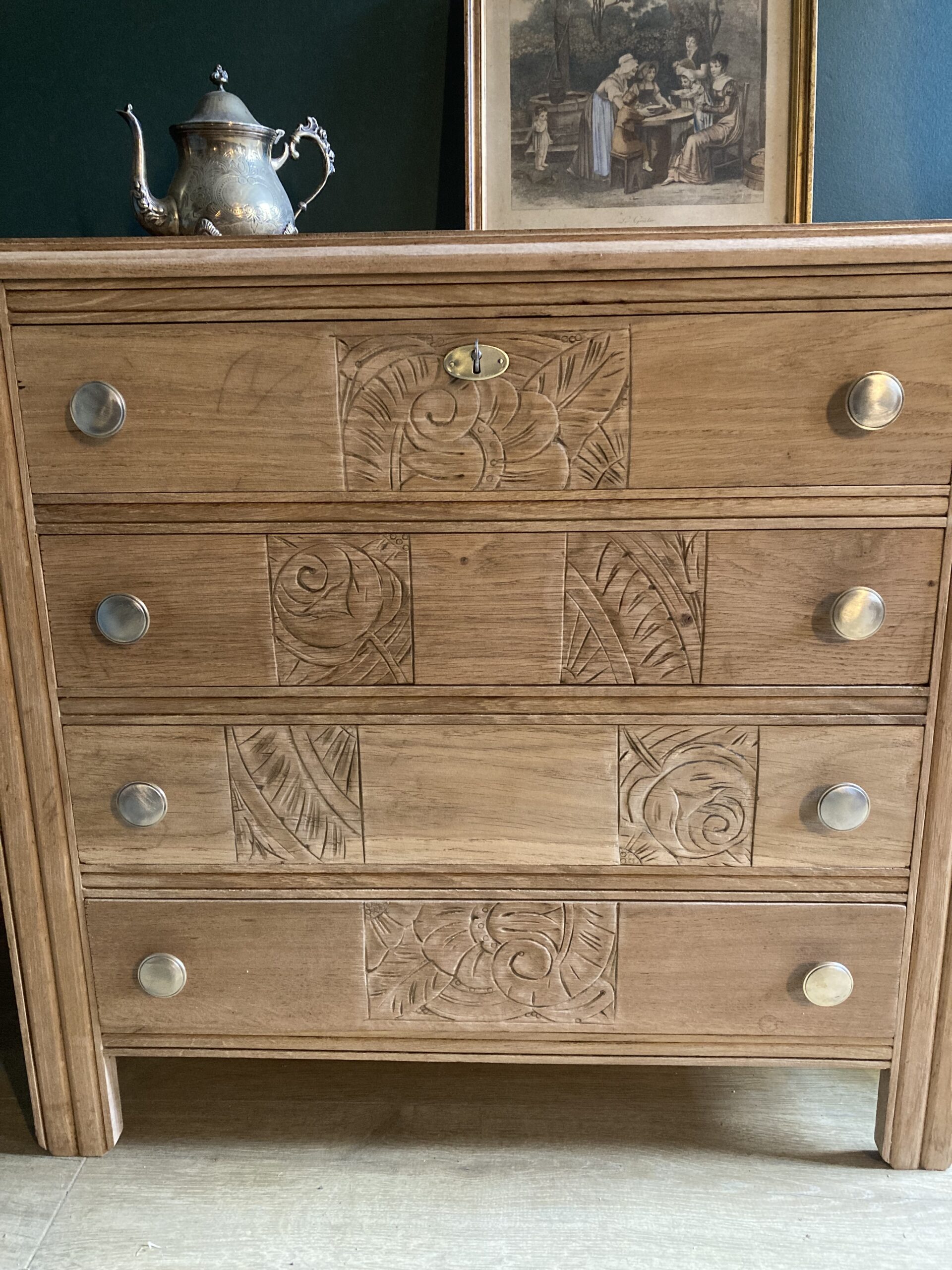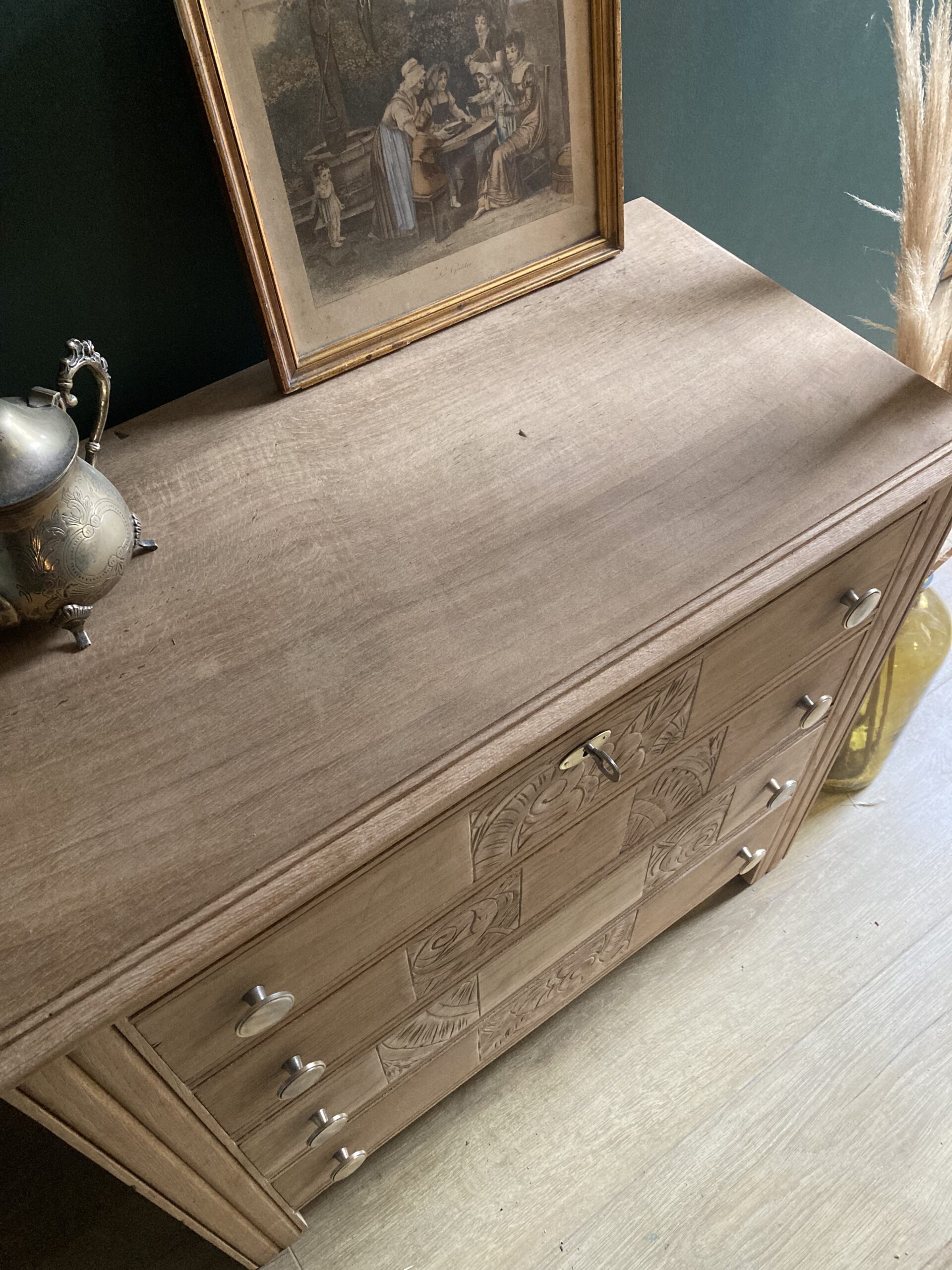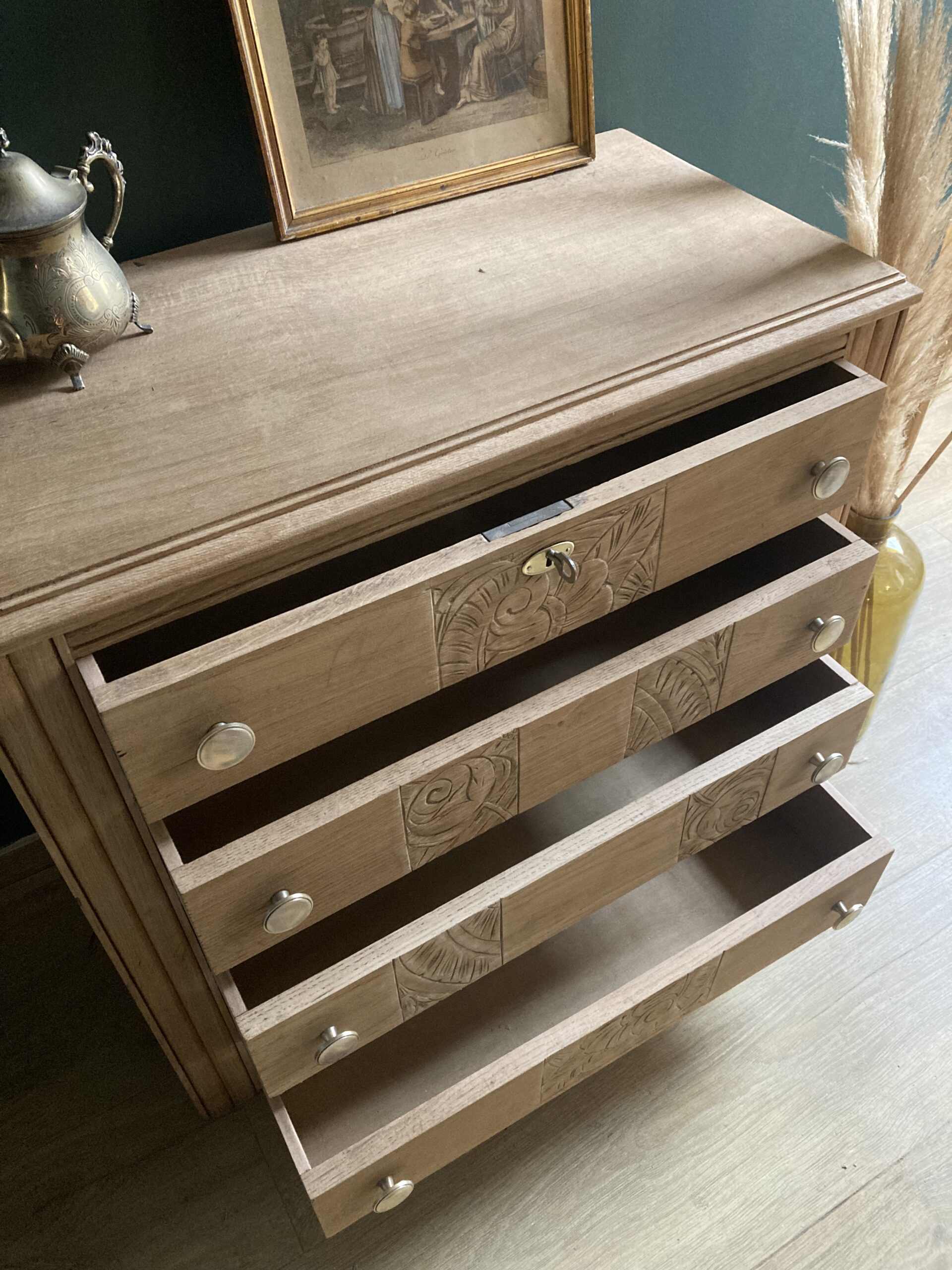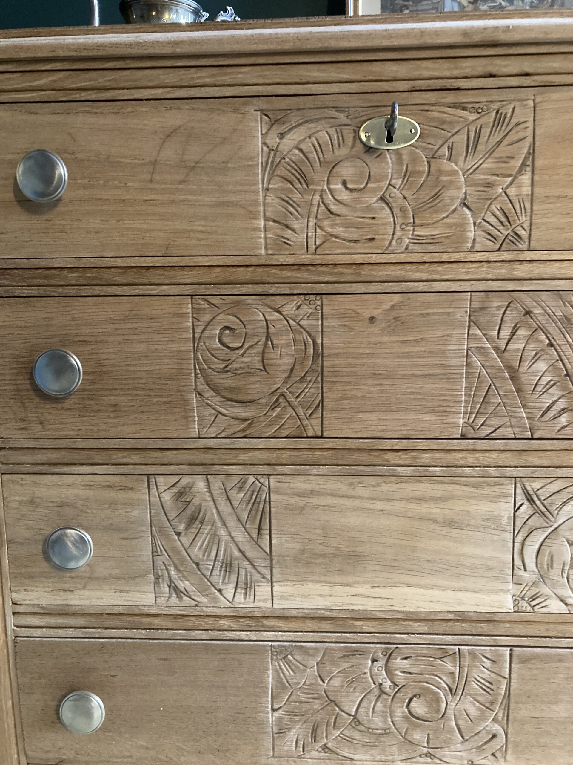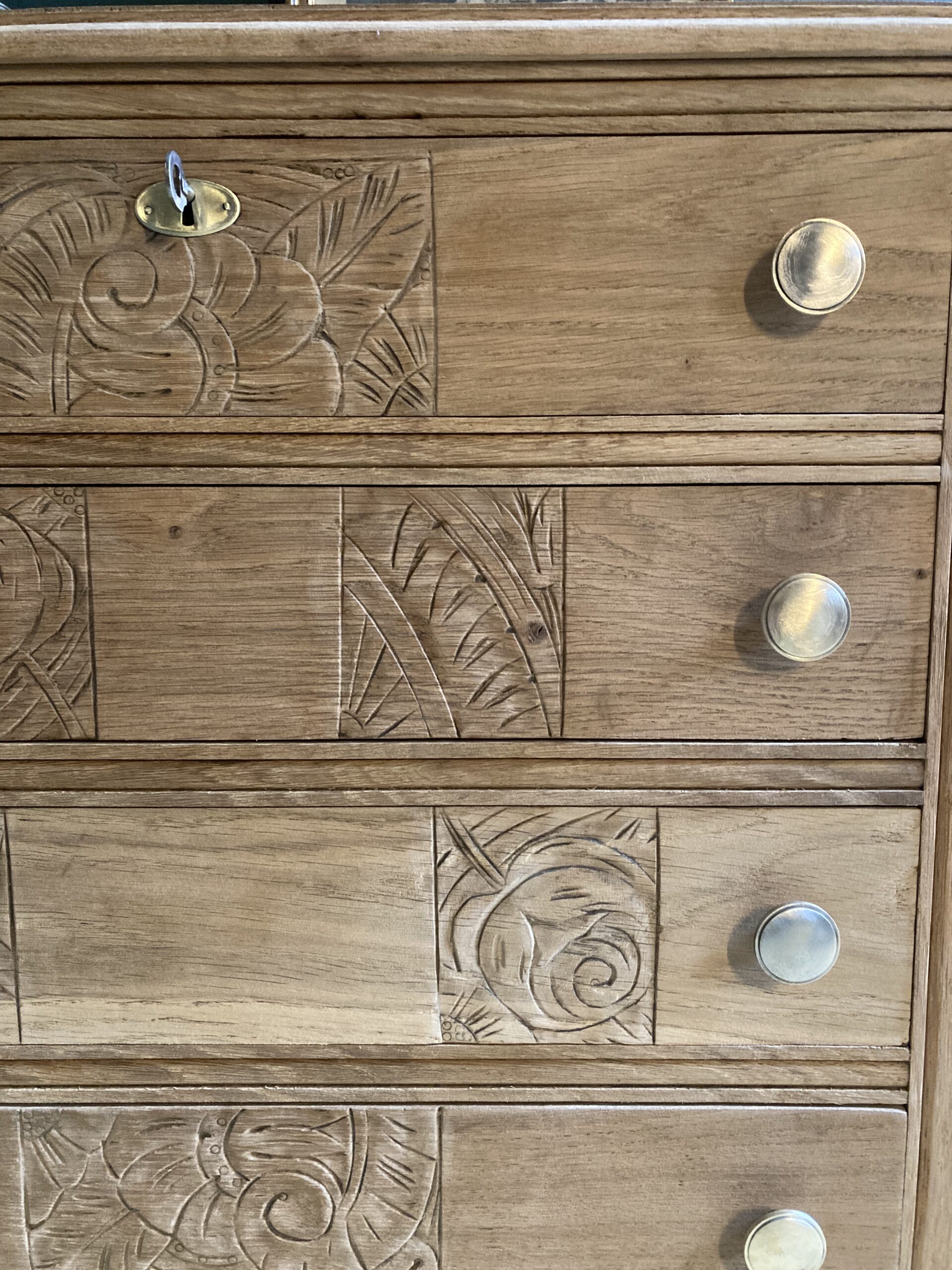 Petite particularité qui ajoute un charme particulier est la présence d’une serrure sur le tiroir du haut, d’origine et qui fonctionne parfaitement.